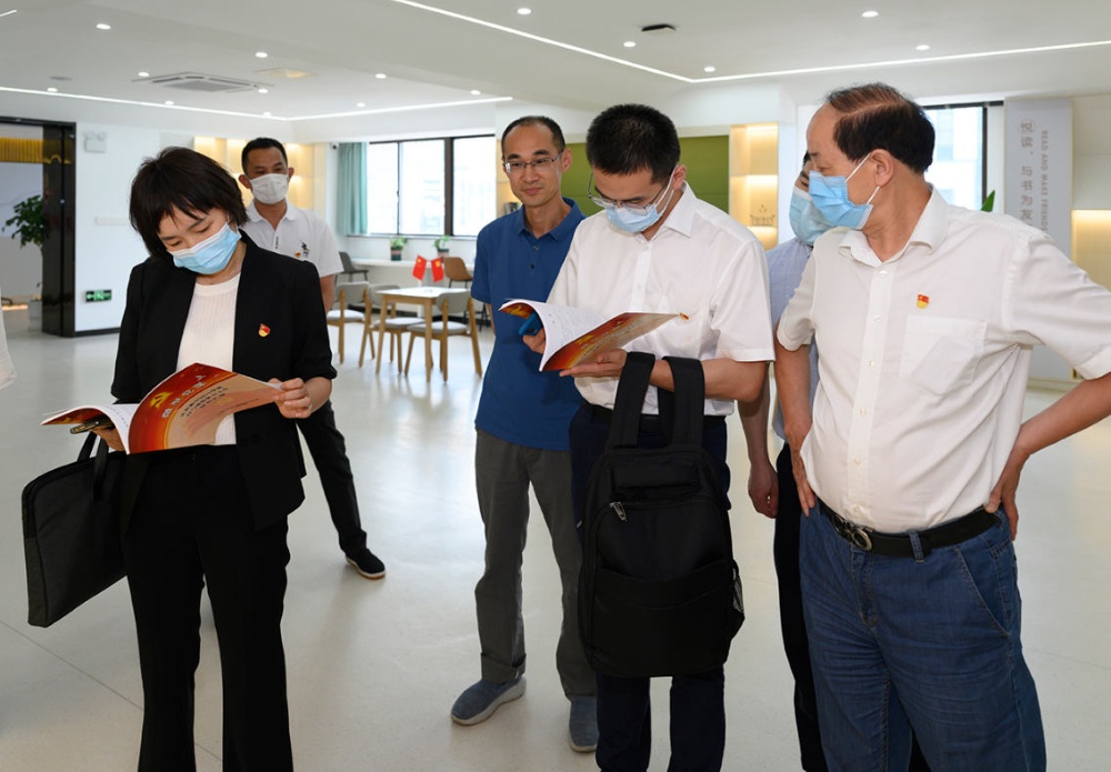 指導檢查組領(lǐng)導一行參觀(guān)公司新建成的黨群服務(wù)中心、食品安全檢驗檢測中心,不時(shí)駐足并詢(xún)問(wèn)公司黨建歷史和企業(yè)發(fā)展歷程等。
